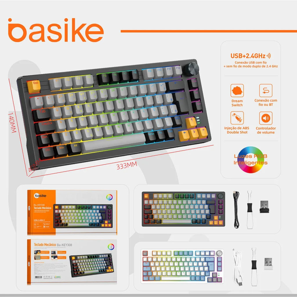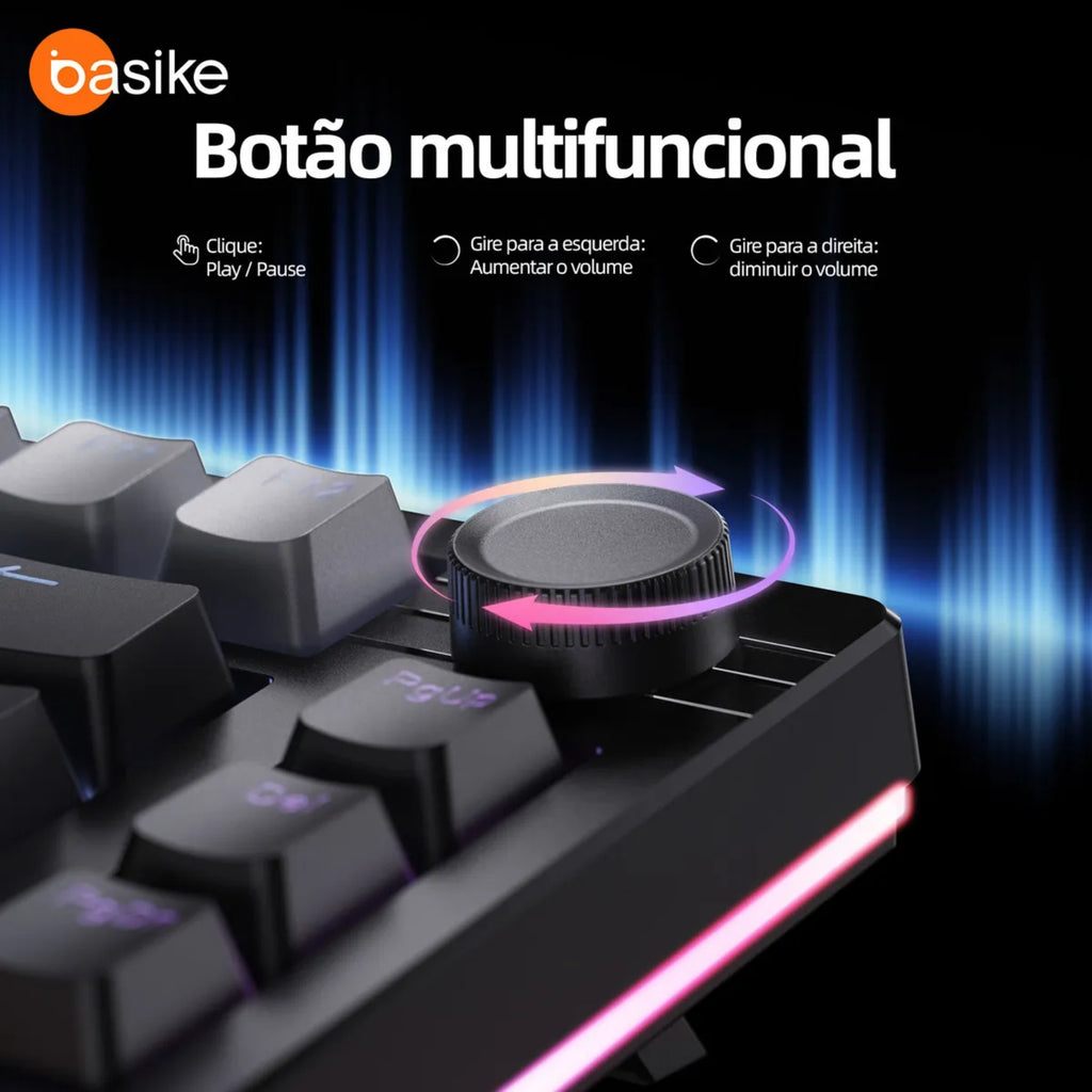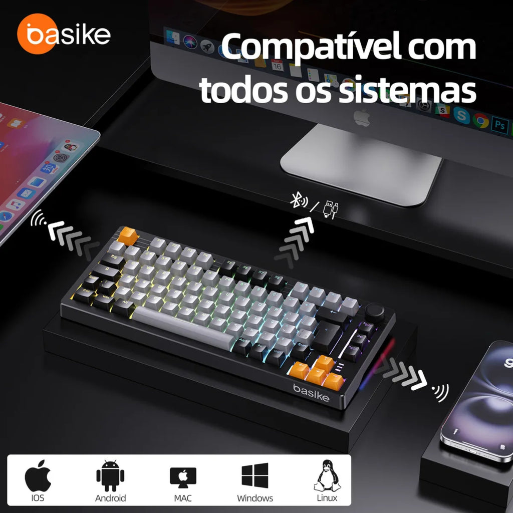 Teclado Mecânico Gamer Basike – RGB | Gateron G Pro 3.0 | Hot-Swap | Triple Mode (Bluetooth + 2.4G + USB)