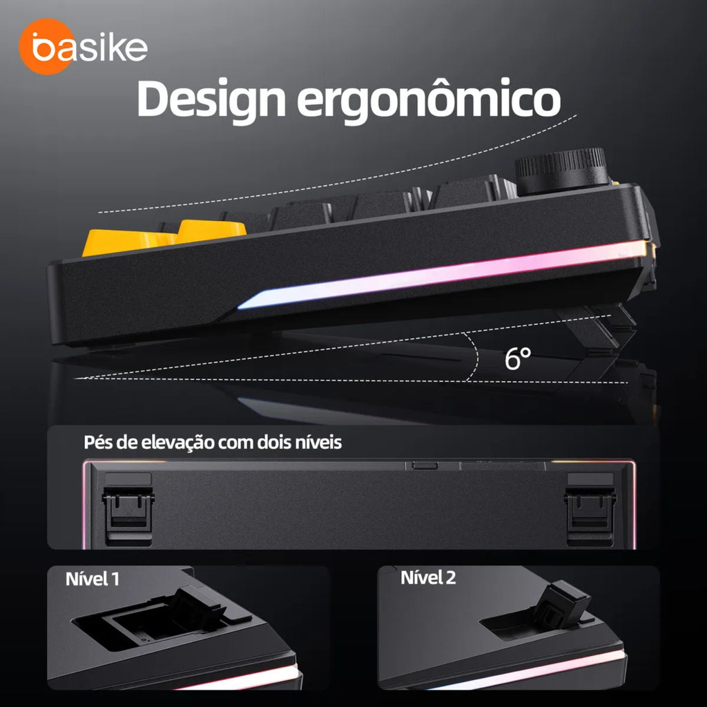 O Teclado Mecânico Gamer Basike 75% foi projetado para quem exige alta performance, precisão absoluta e uma experiência premium de digitação — seja para games competitivos, produtividade diária ou uso profissional.