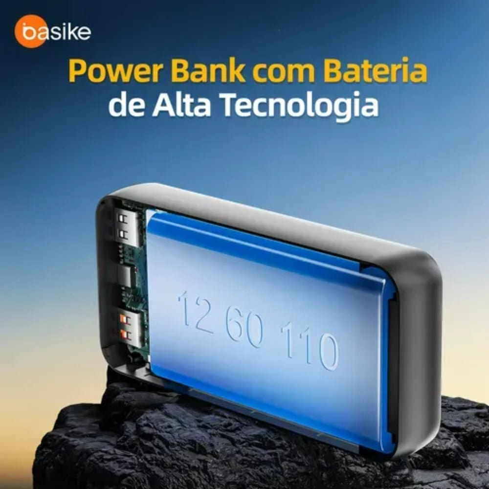 Nunca fique sem bateria. O Power Bank Basike 20.000mAh combina alta capacidade, carregamento ultrarrápido de até 22,5W e um design compacto e inteligente, ideal para quem precisa de energia confiável no dia a dia, viagens ou trabalho.